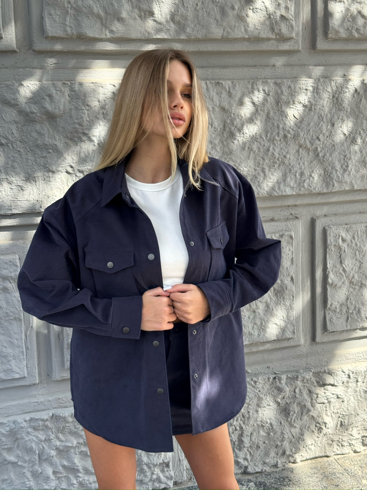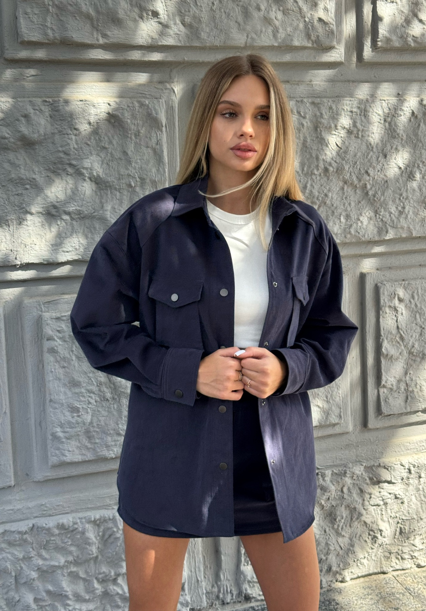 • Дизайн: Классический крой с современными элементами. Куртка прямого кроя с длинными рукавами, застегивается на матовые кнопки. Логотип JS на кнопках добавляет уникальности и стиля. Куртка оверсайз имеет закругленный низ.